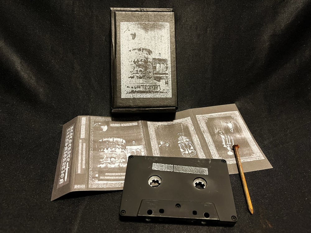 - Spray painted cassette - Oversized corrugated box - Rusted coffin nail - Ink stamped artwork, Līċ Lēoht logo, DT emblem, and run number - Edition of 30
