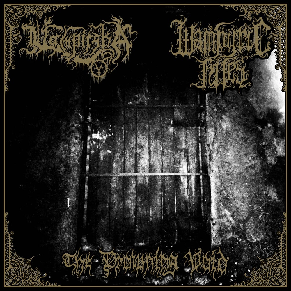 Emerging from the void of black devotion, Vampirska, The U.S.-based Raw Black Metal entity offers two of it's most decrepit hymns yet. Walls of overwhelming chaos and depravity with the essence of mysterious and punishing raw black metal that emits an enchanting hypnoticism. The bombardment of devastation is met with another familiar entity of the grotesque and disgusting chambers; Wampyric Rites, the Ecuadorian spectre of the Black Metal Plague Circle. A two-part deliverance of malevolance and agony that call forth an intense massacre of total hatred and suffering. The conspiracy of these two entities brings four summonings to be unleashed onto the hordes...